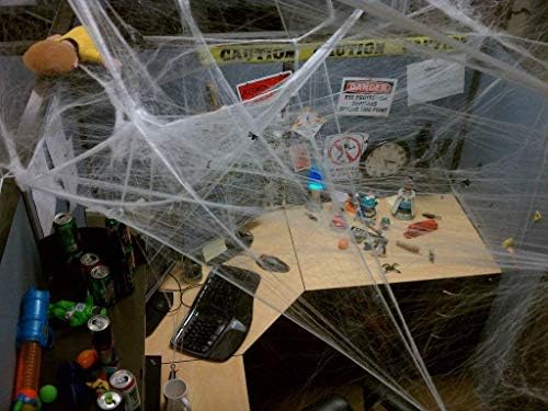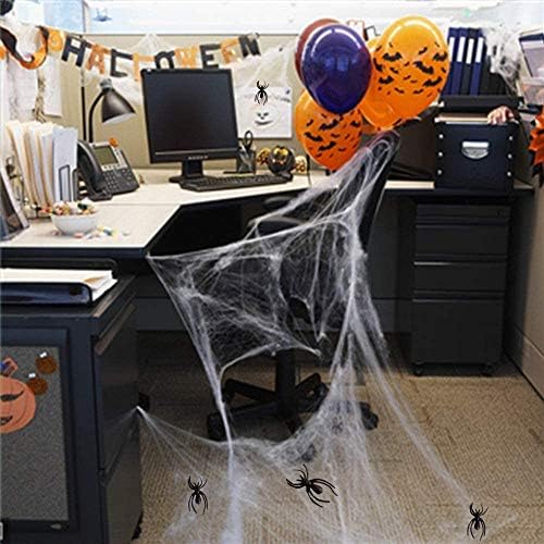 Perfect for a creepy, haunted look- White spider web looks like real cobwebs, with 40pcs spiders, really adding an eerie accent to your haunted house or Halloween party.
