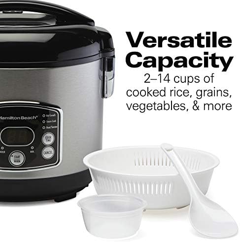 Versatile capacity: The rice/hot cereal cooker makes 2, 14 cups of cooked rices and grains, hot cereals, steamed vegetables, and more.