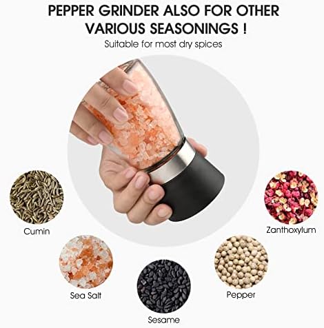 đ„ăFreshness of Your Spices MaintainessăSalt and pepper grinder set was designed to maintain the flavor of your spices for a very long time and keep them out from dust and moisture between uses or in storage. The grinders do not absorb flavors nor do they corrode.You can use it to grind sea salt, pepper black pepper, red, white or garlic pepper or other spice.