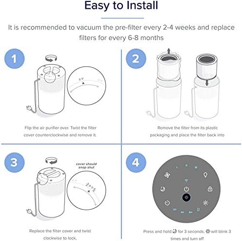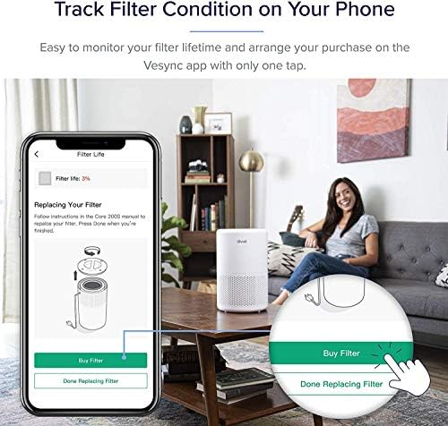 Tracking Filter Condition With Phone:Its more convenient to check the remaining life of filter with Vesync app. It is recommended to replace filters for every 6-8 months.