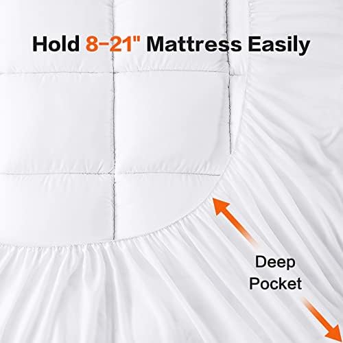 【No-Slip & Deep Pocket】- Stretchable knitted skirt design is deep enough to fit securely mattress depths 8″-21″。 hugs your mattress securely, ensuring that the topper stays in place no matter how much you movec