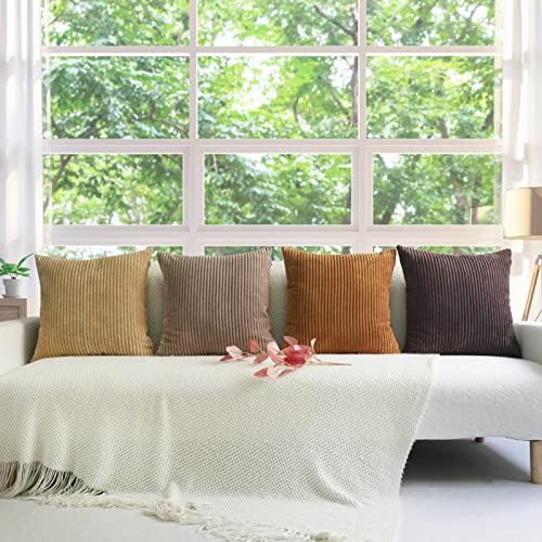 【Premium Material】This decorative pillow covers are made of Corduroy, very soft. Size: 18×18 Inch/45×45 cm. Tailored for 18×18 or 20×20 inch insert.Cushion covers ONLY(4 pieces). No Insert. No Filler.