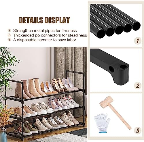 HIGH QUALITY AND DURABILITY: Thickened metal tube with power-coated is smooth and with strong bearing much heavy duty, does not rust or corrode with normal use. Reinforced quality plastic connectors, very sturdy enough to hold your shoes. This shoes rack for closet really is an excellent option.