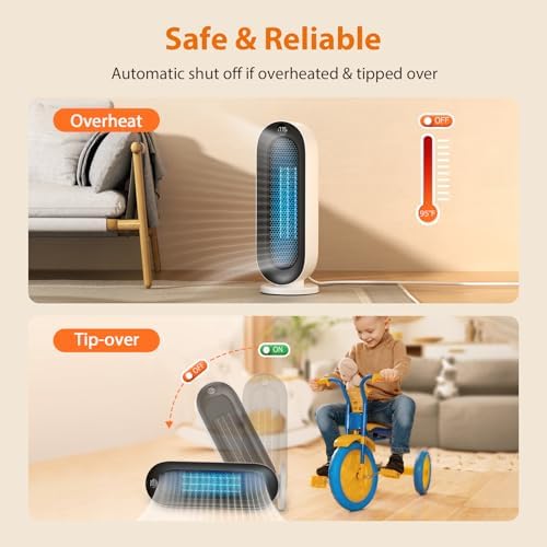šŸ”„Fortified safety Function: Stay warm and secure with Ilake heaters! Made of V0 flame-retardant materials with multiple protections: tip-over & overheat protection. With 30s auto stop heating and cool down once knocked down. The self-contained, self-regulating ceramic heating element ensures that the exterior housing remains cool to the touch, making it a secure option for both chilly days and nights. Rest assured with Ilake’s commitment to safety.