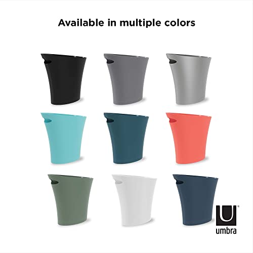 Umbra Skinny Can is a slim and stylish trash can, with a narrow footprint, designed to fit into small spaces and hold up to 2 gallons. Skinny is sleek and narrow, with a modern design, and comes in a wide array of finishes to match any existing decor. With a polypropylene construction, Skinny is durable and easy to maintain. Its integrated, built-in handle allows for the simple transport and disposal of contents. Skinny features rounded corners to prevent liquids from getting trapped into tight corners. Measuring at 13.25 by 6.75 by 13 inches, Skinny is able to fit into compact, unconventional places and make a contemporary, bold statement.